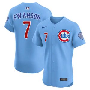 Men Chicago Cubs Dansby Swanson Elite Alternate Light Blue