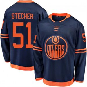 Youth Edmonton Oilers Troy Stecher Authentic 2025 Stanley Cup Final Reverse Retro 2.0 Navy