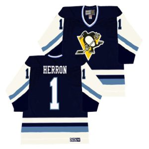 Men Pittsburgh Penguins Denis Herron Throwback 1977 Navy