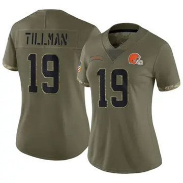 Women Cleveland Browns Cedric Tillman Vapor Limited 2021 Salute to Service Olive $39.90