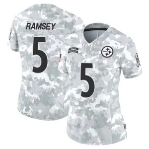 Women Pittsburgh Steelers Jalen Ramsey Vapor Limited 2024 Salute to Service Arctic Camo $39.90