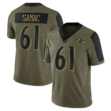 Home Baltimore Ravens Nick Samac Youth Baltimore Ravens Nick Samac Vapor Limited 2021 Salute to Service Olive